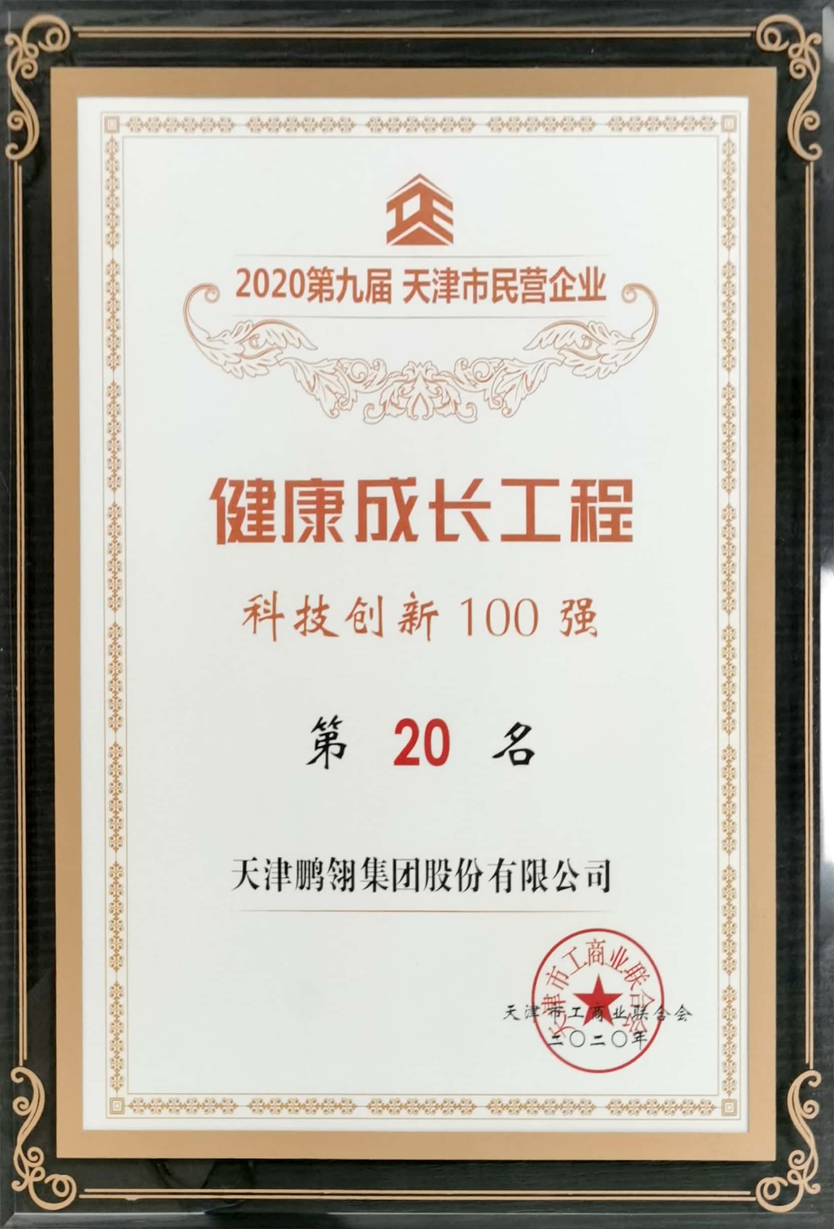 我公司荣获第九届天津市民营企业“科技创新第20名”