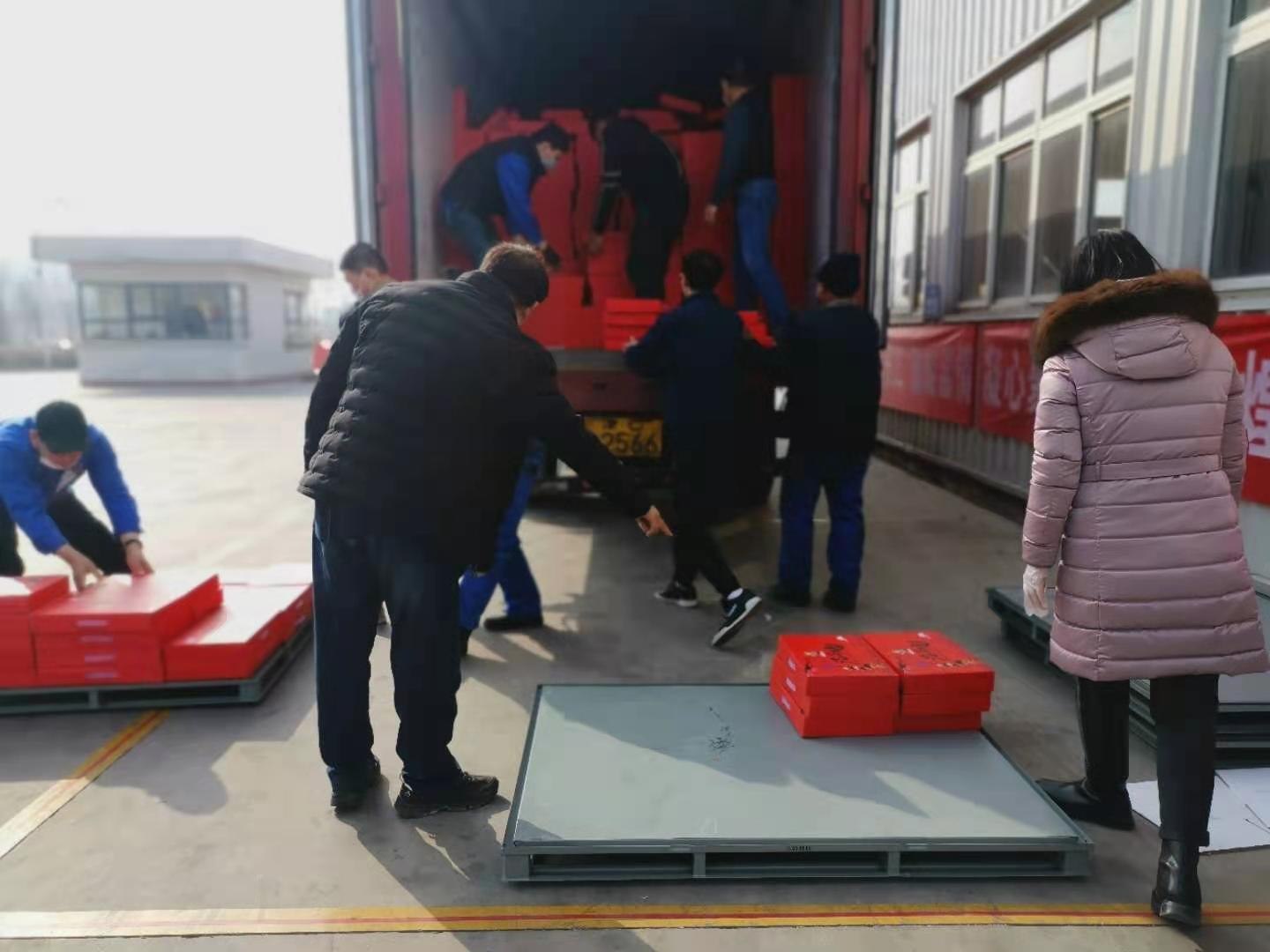 1月31日中午,满载1600余份海产品的卡车,抵达公司。来自荣成石岛的野生黄花鱼及海鲜酱礼盒,带来了公司董事长远在山东的问候。员工们深受鼓舞,发放现场热火朝天,在快速地完成了卸车分装后,员工们先是以车间/部门为单位按次序领取福利,接着便高效有序地分发到了每位员工的手中。