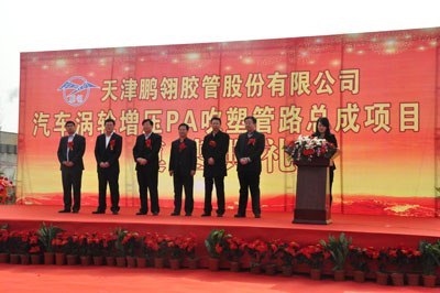 "Automotive Turbo Charger PA blow moulding hose assembly project" began to construct , is another strong step for Pengling standing out in the industry, by taking advantage of the capital market. With investment of 350 million yuan, 114234 square meters for construction, this project is divided into two phases, the annual output of first phase will be 1.8 million; the annual output of second phase will be 7.2 million, the total output will be 9 million yearly after the completion of this project. After the project is completed, it is estimated that the annual output value will be about 695.25 million yuan with 350 new jobs.